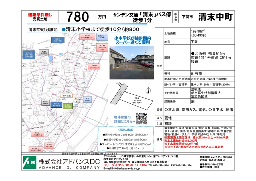 清末中町分譲地(1区画のみ)880万円※建築条件無し