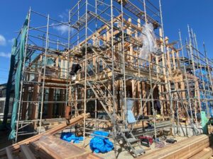 晴天の棟上げ日和となり、棟梁・大工さんたちのおかげで無事に棟上を完遂することが出来ました🏠
